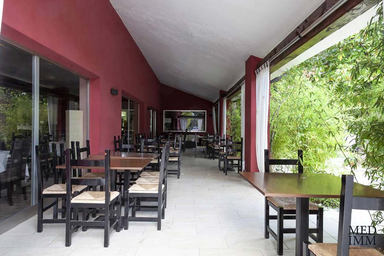 - on the ground floor we find the reception, a large restaurant room with 250 seats, a bar corner, a pizzeria corner with a wood oven, a large kitchen, a relaxation room, three closets, three bathrooms for customers, a dressing room and a bathroom for employees, a technical room, three bedrooms with bathroom, various porches and terrace and ample parking;