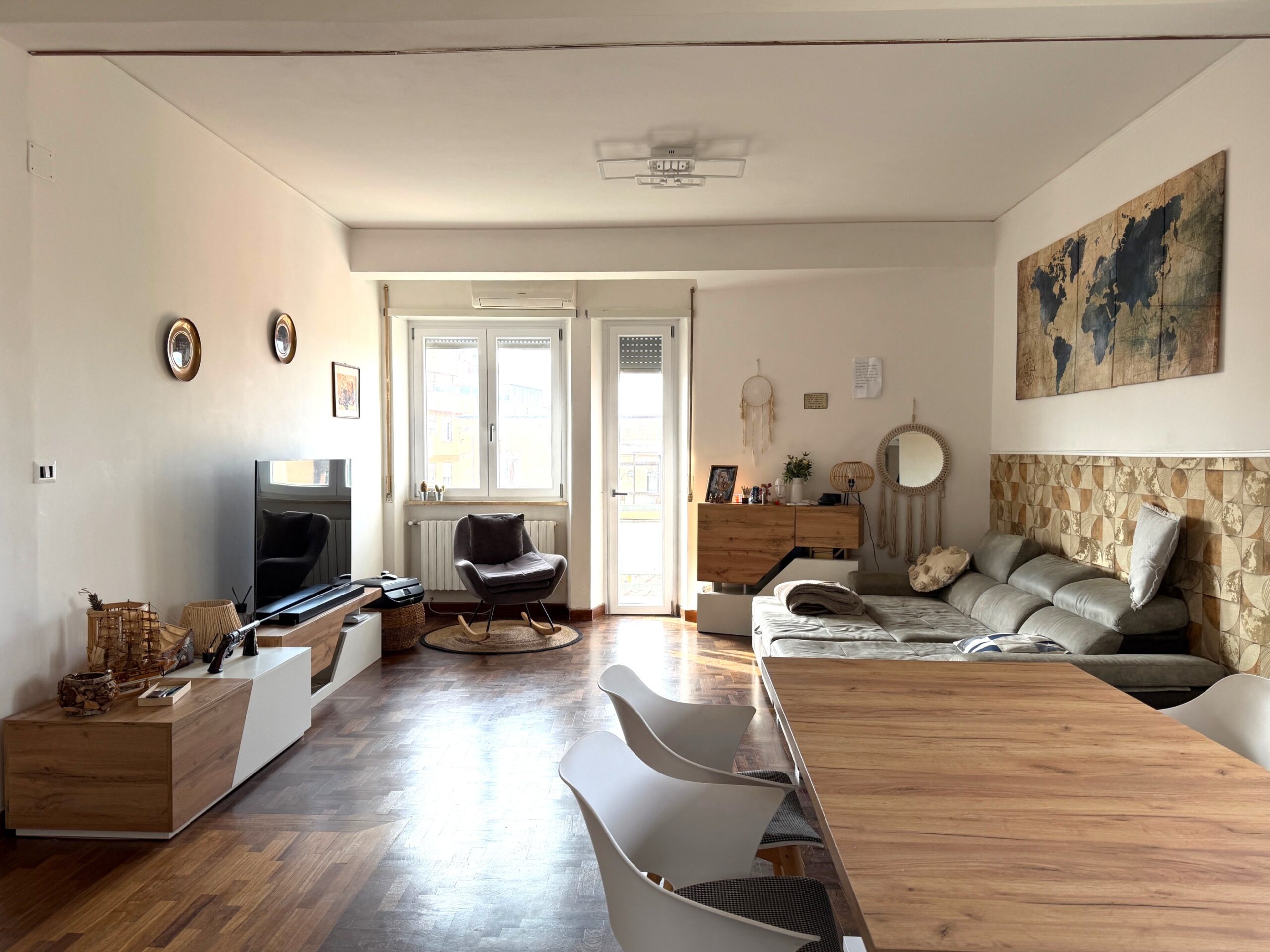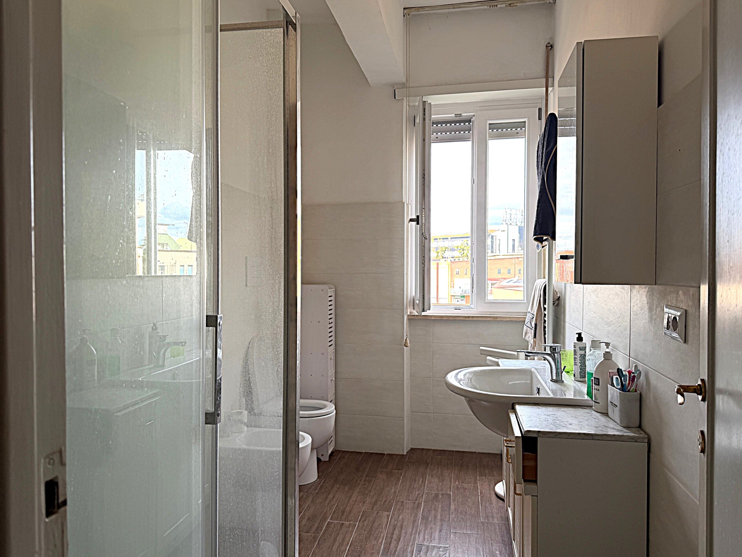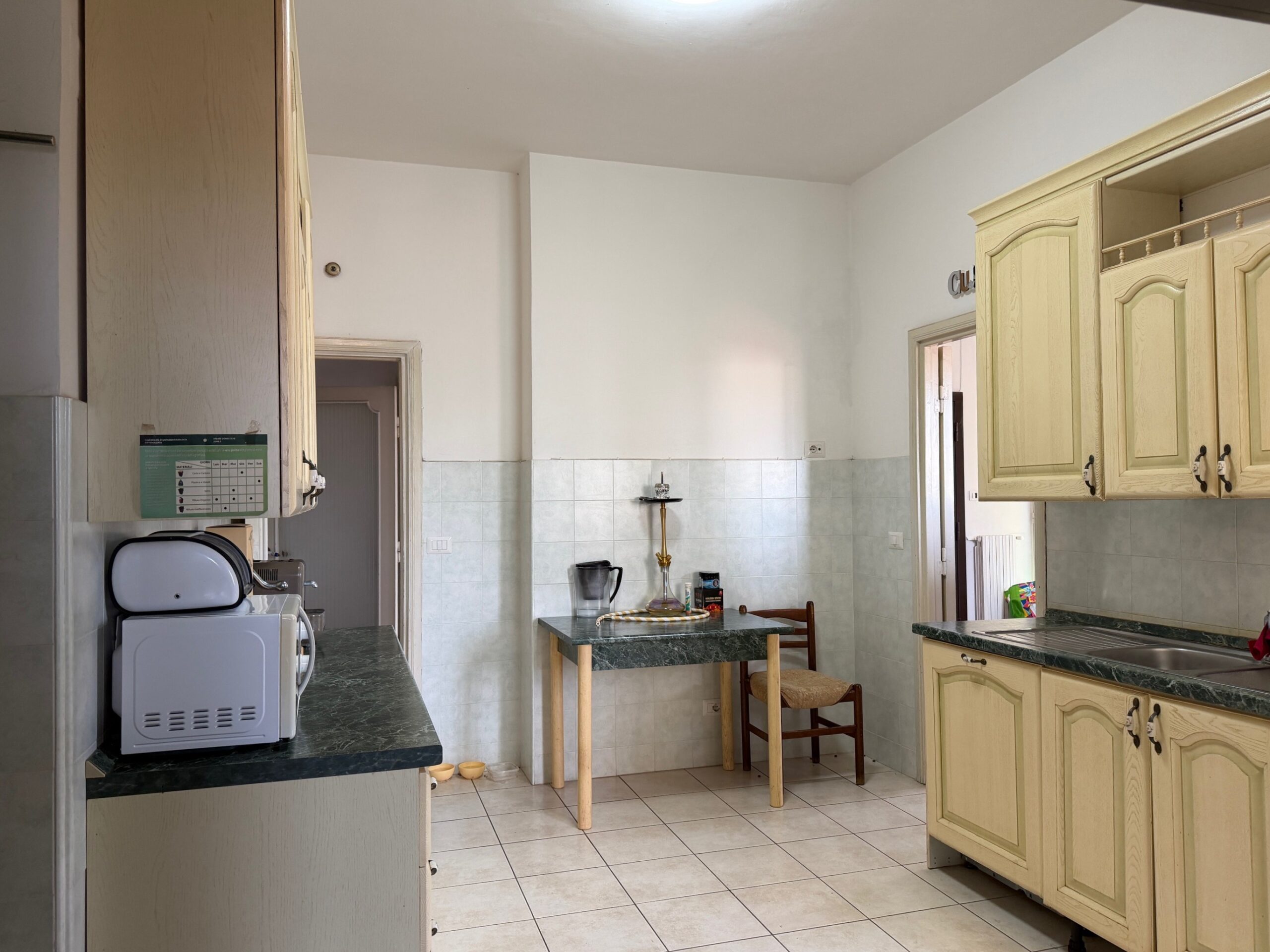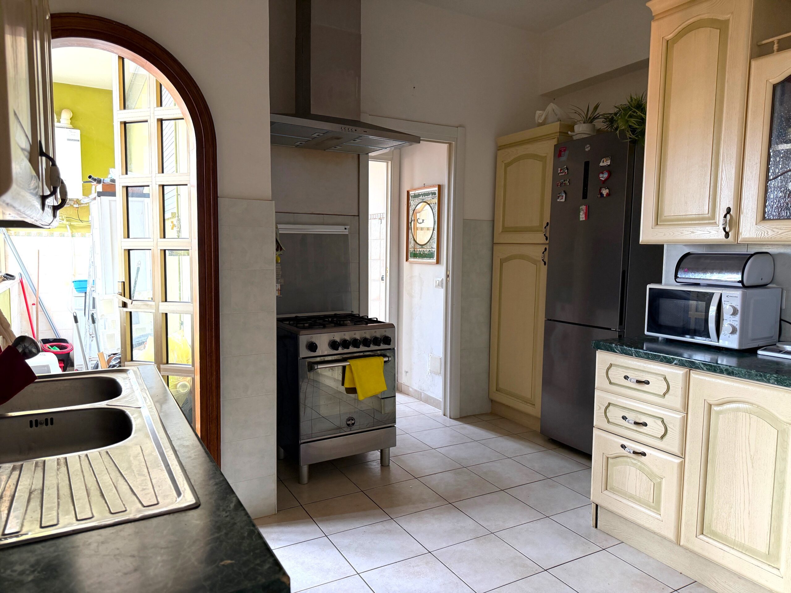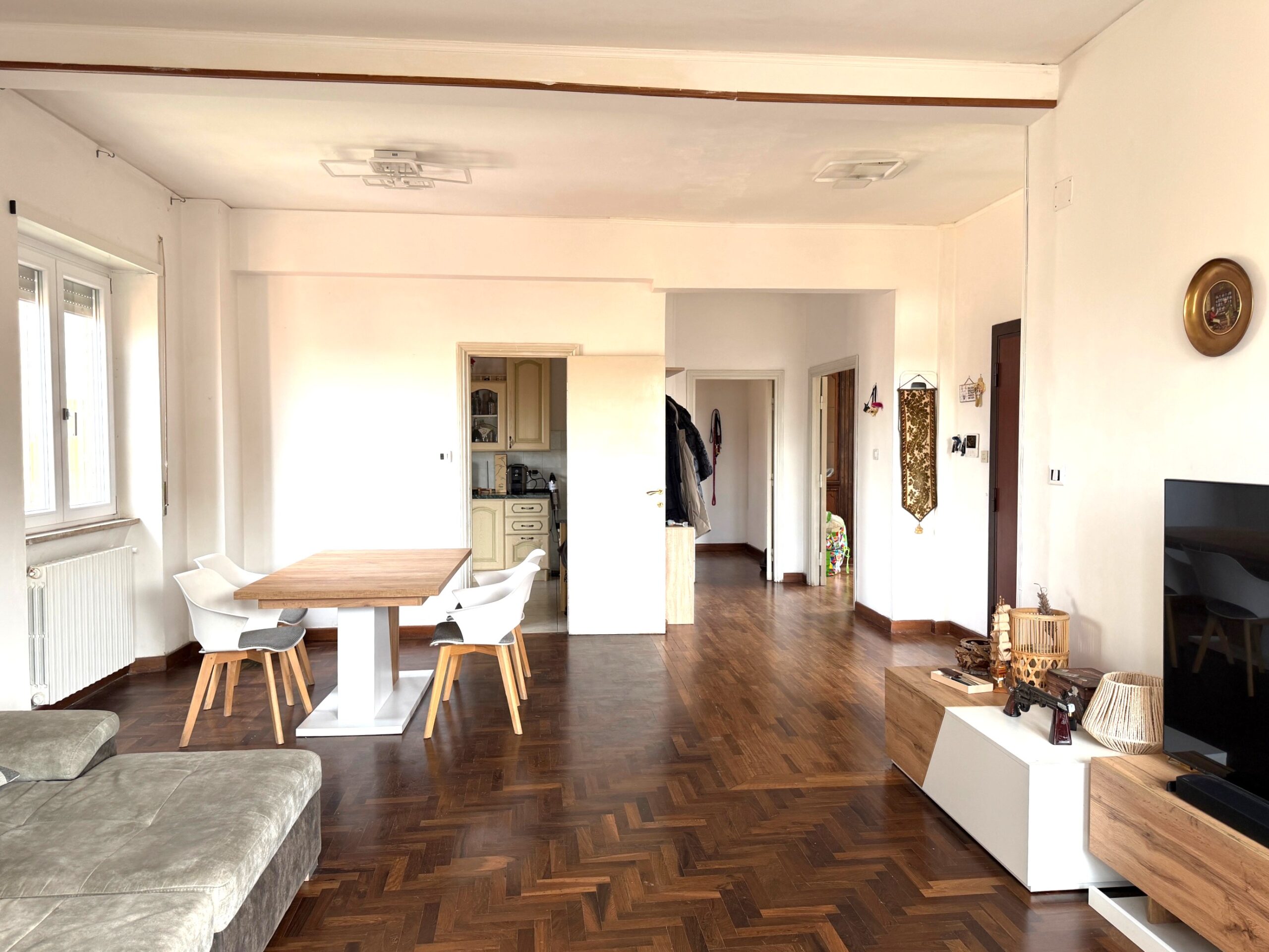 Viterbo in via Adolfo Marini, via situata tra via Garbini e via della Palazzina, a solo 300 metri dal centro storico, proponiamo in vendita un luminoso appartamento al quarto ed ultimo piano servito da ascensore. La dimensione è notevole, 170 mq. quadrati lordi ( circa 150 mq. netti ) oltre spazi esterni ed è composto da: ingresso, salone doppio con balcone, cucina abitabile con veranda, un bagno di servizio finestrato, grandissima camera ( possibilità di trasformarla in due ambienti separati ) con due porte finestre che affacciano su un balcone su due lati, tre ulteriori ampie camere e il secondo bagno finestrato. Completa la proprietà una soffitta di 4 mq al quinto piano ed un garage di 22 mq al piano terra situato nel giardino condominiale recintato e delimitato da un cancello pedonale e carrabile, dove è possibile parcheggiare. L’appartamento ha una tripla espozione, ha gli infissi nuovi con vetrocamera, ha il parquet in tutti gli ambienti ad eccezione della cucina e dei bagni. L’ampia area condominiale che circonda il palazzo crea un piccolo “polmone verde” che dona aria, privacy e riservatezza nonostante la posizione dello stesso.
