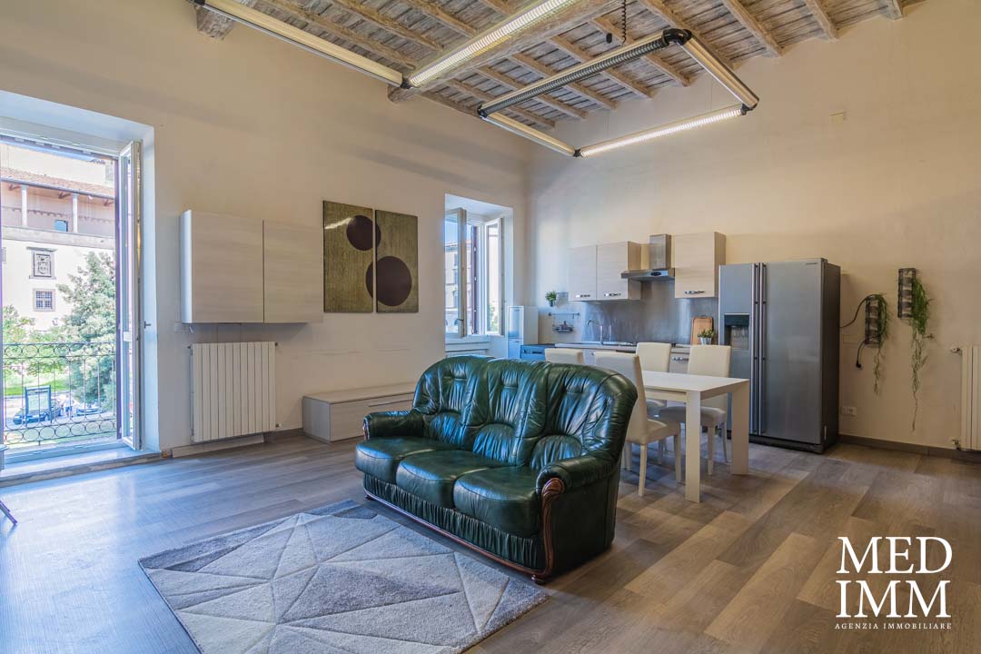 Viterbo, piazza della Rocca, al secondo piano senza ascensore ma con quattro comode rampe di scale, vendiamo un appartamento di circa 90 mq utili (109 catastali) completamente ristrutturato.