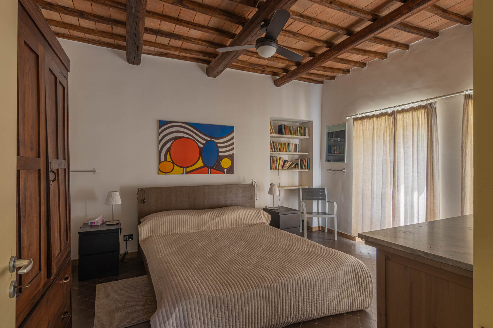 – al piano terra, ingresso, disimpegno, cucina con ampia dispensa, soggiorno-pranzo, grande salone con camino, studio, camera e bagno;