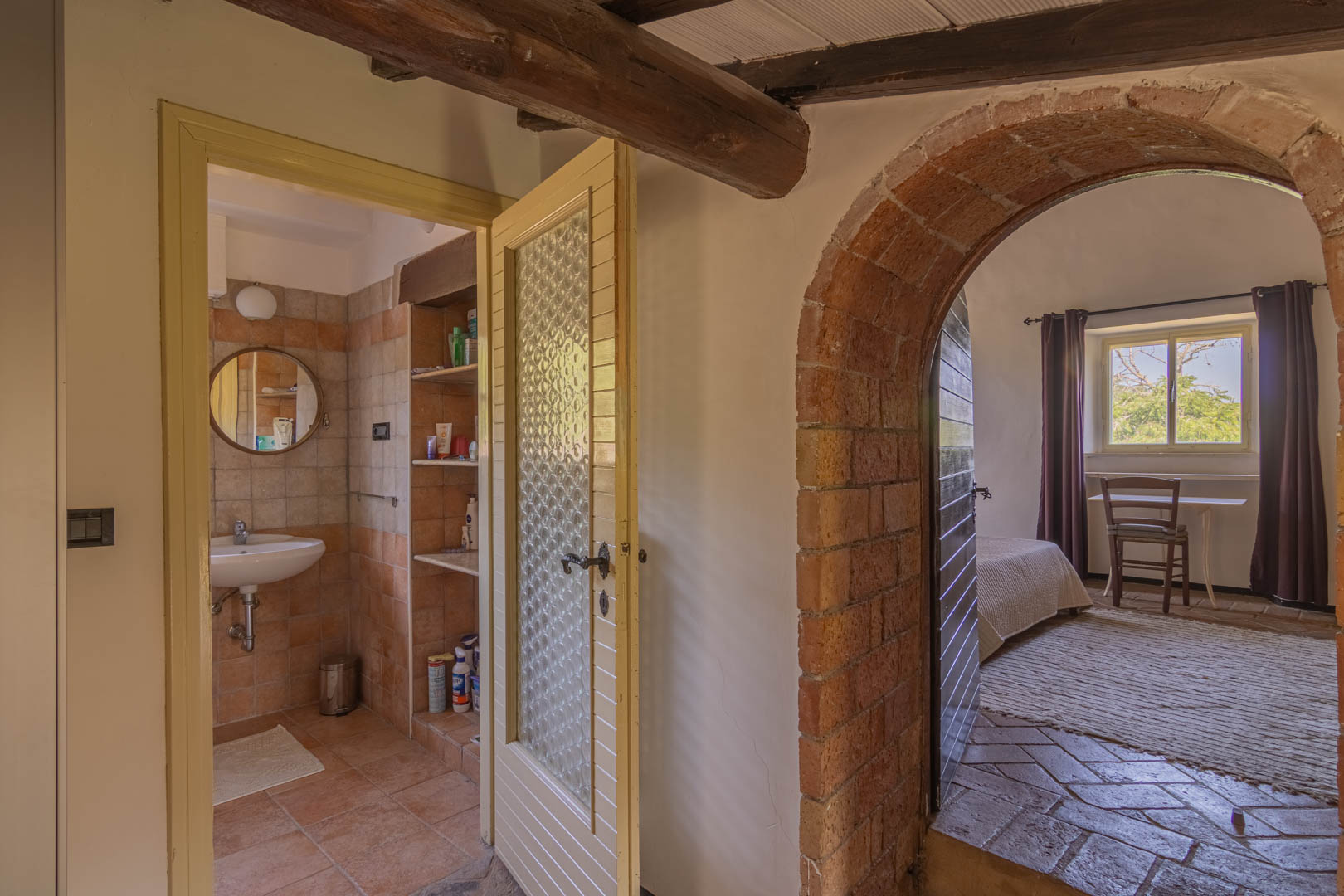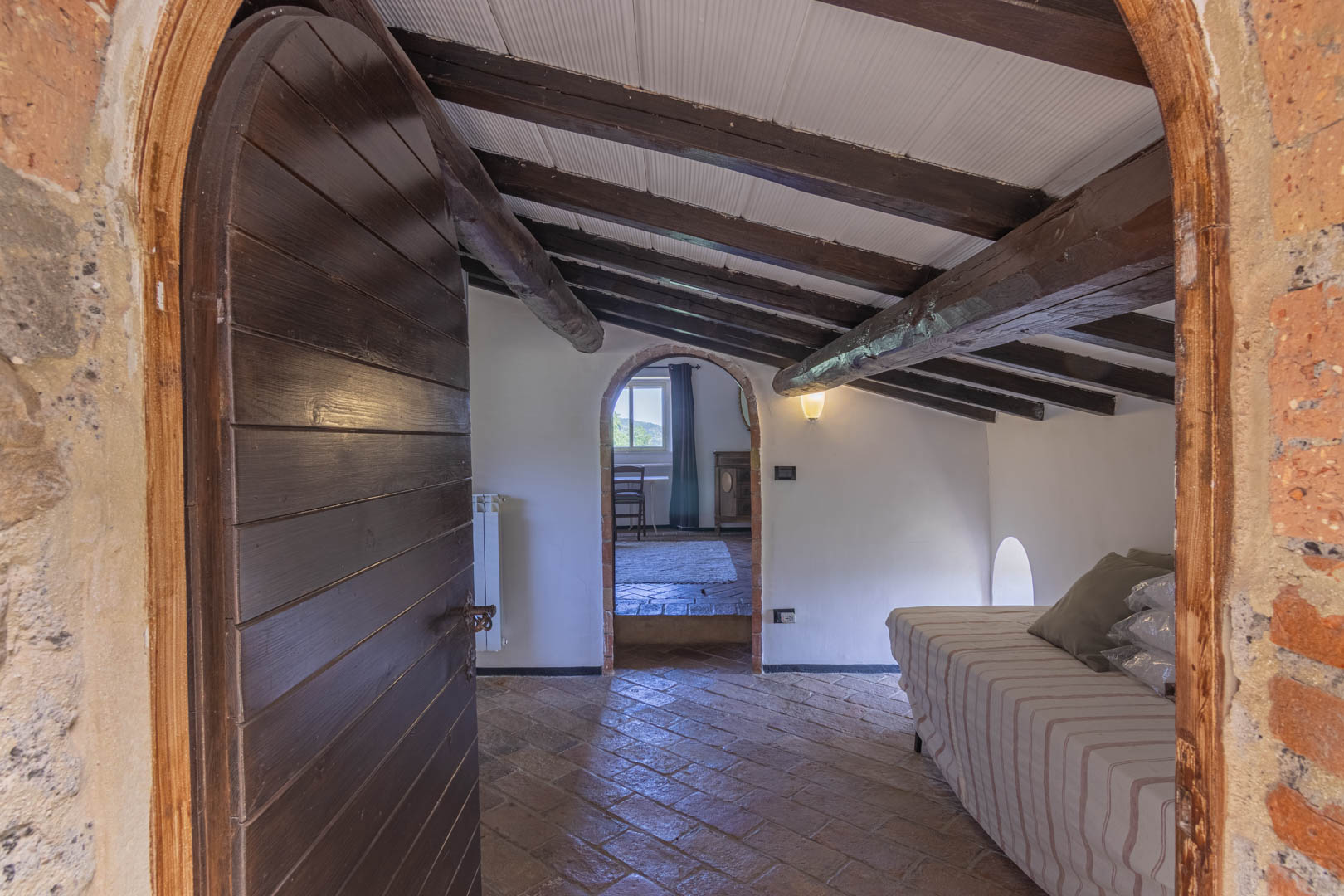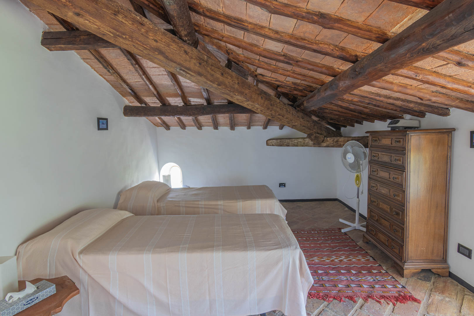 La villa è in buon condizioni, completamente in pietra, travi a vista e pavimenti in travertino.