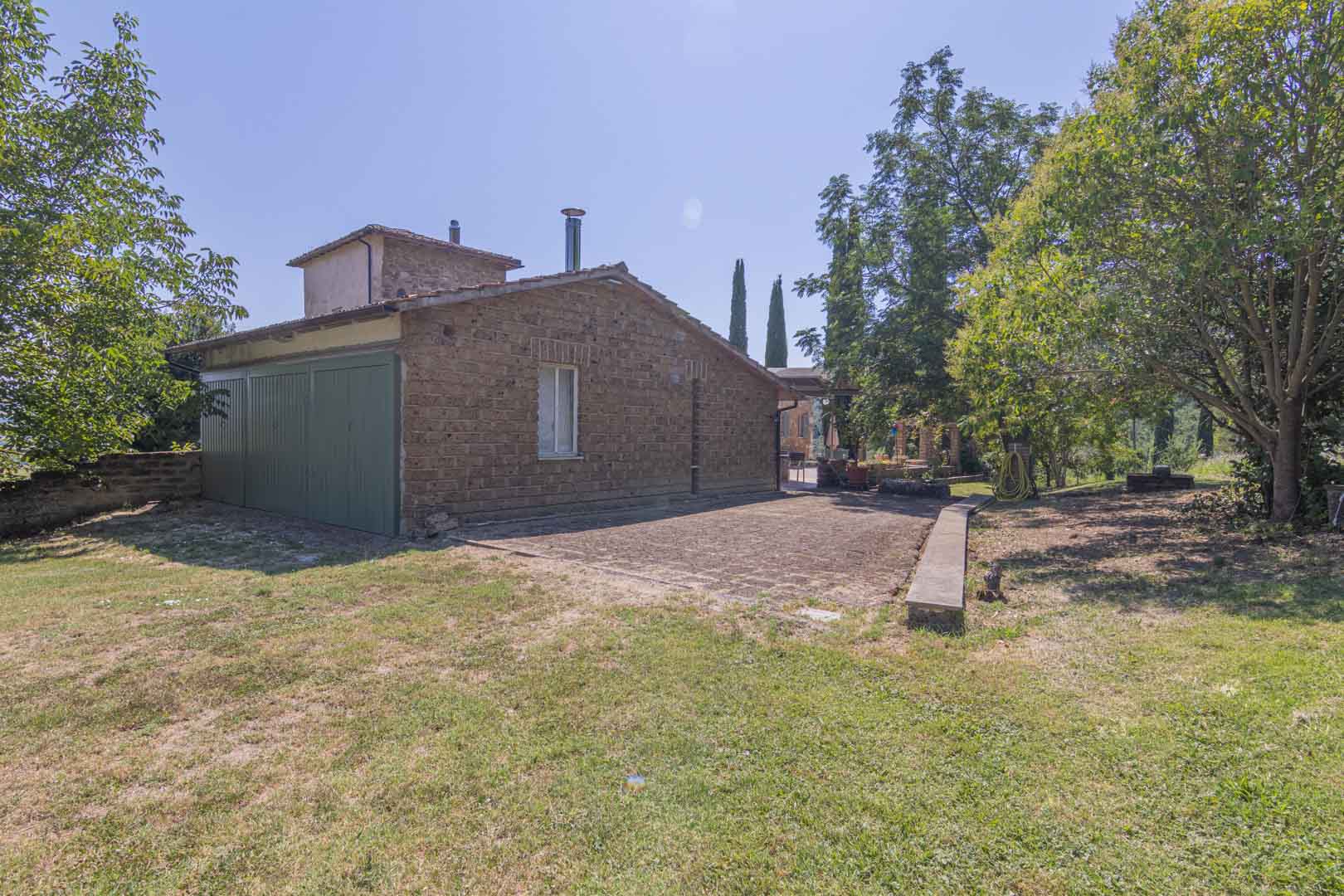 Gli annessi comprendono un magazzino al piano seminterrato di 50 mq. con caldaia a gas e stufa a pellet che funziona anche a legna e un garage al piano terra di 40 mq. Inoltre ci sono dei pannelli solari di 500 litri per la produzione di acqua calda.