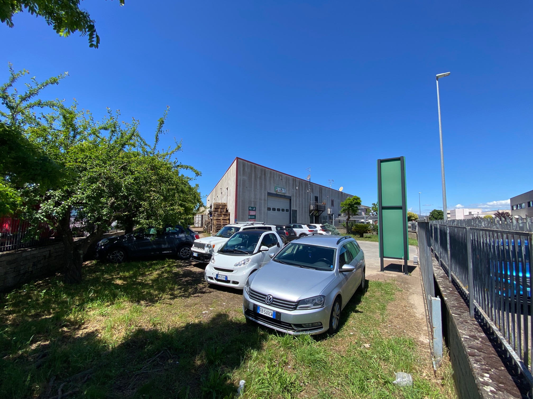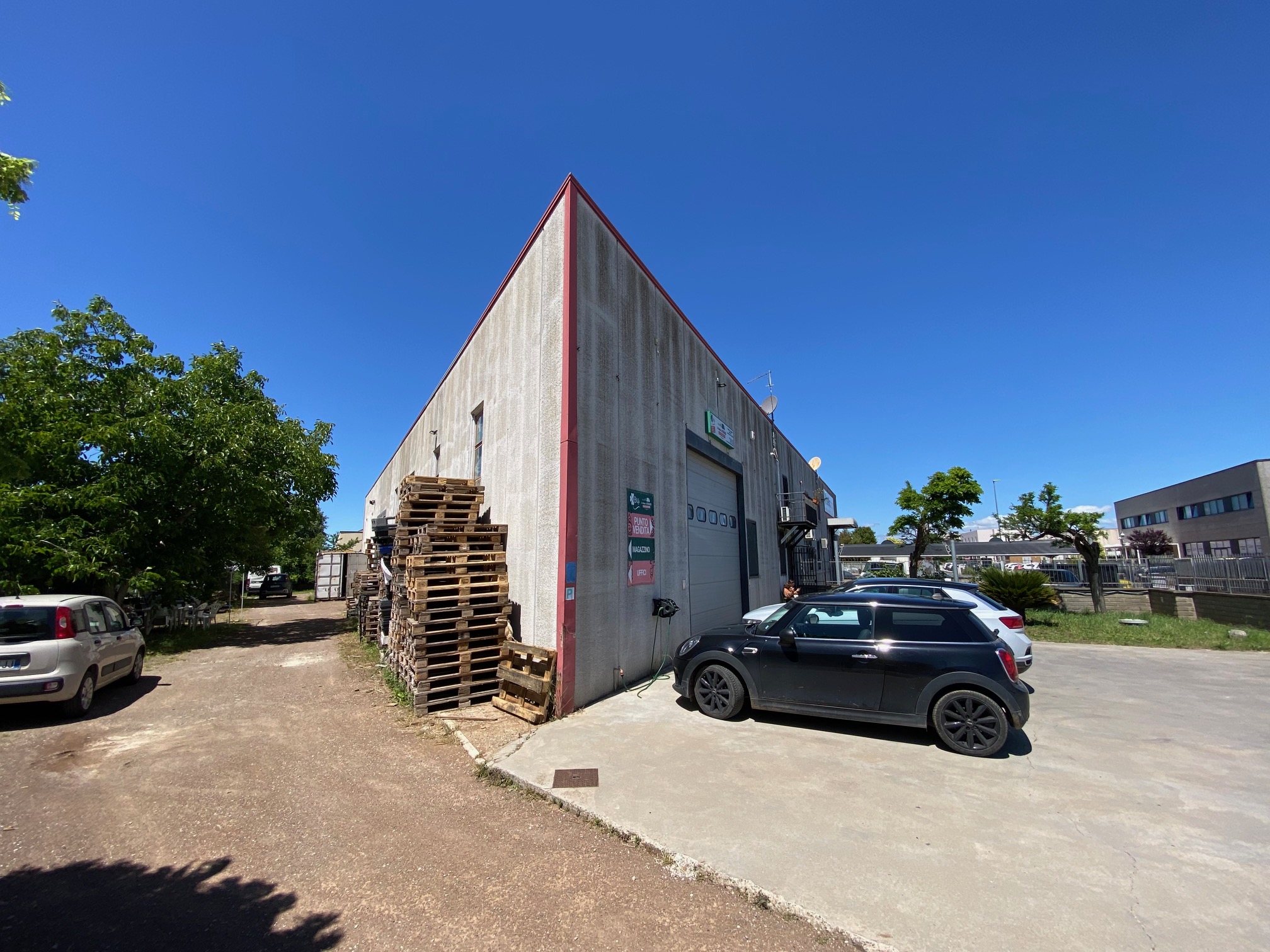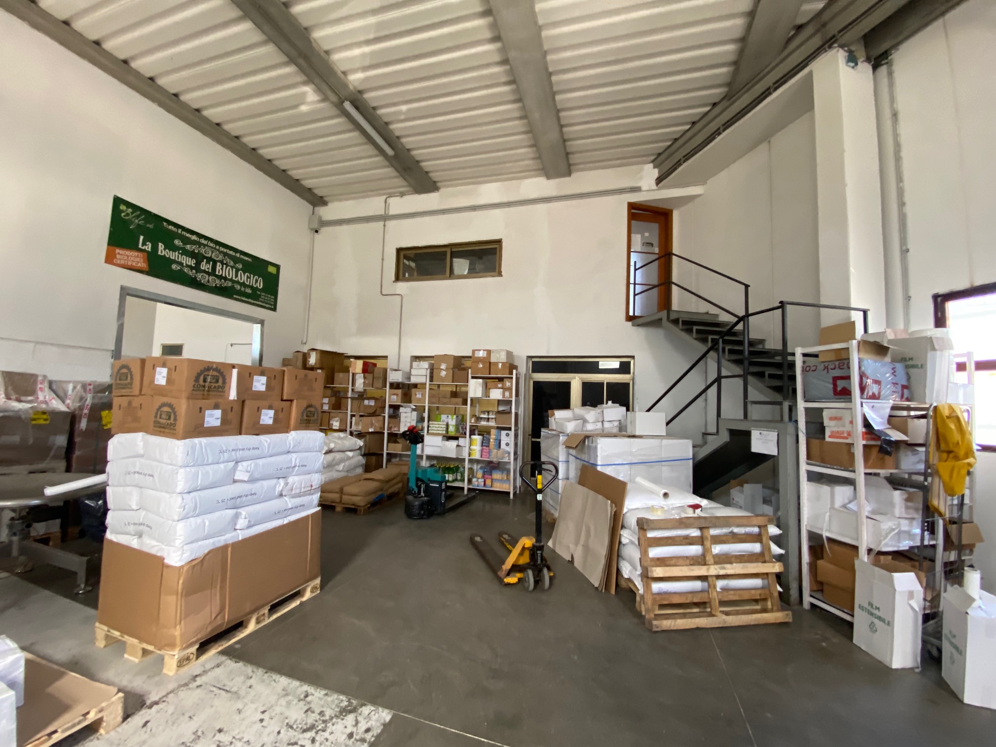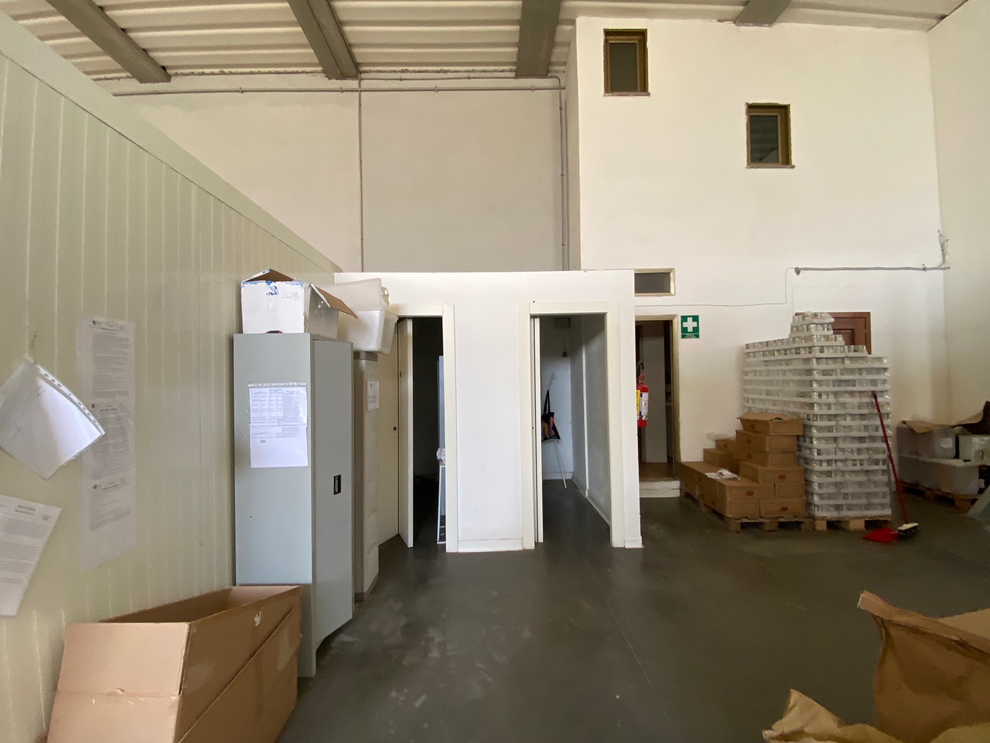 Porzione di capannone di 440 mq con area esterna recintata e con cancello automatico. Ci sono 2 bagni con docce e antibagno, una cucina e zone uso ufficio. Per quanto riguarda il riscaldamento ci sono due ventilconvettori. La porta principale è motorizzata e la proprietà è completata da un pozzo, una tettoia con distributore di gasolio e cisterna sotto terra.
