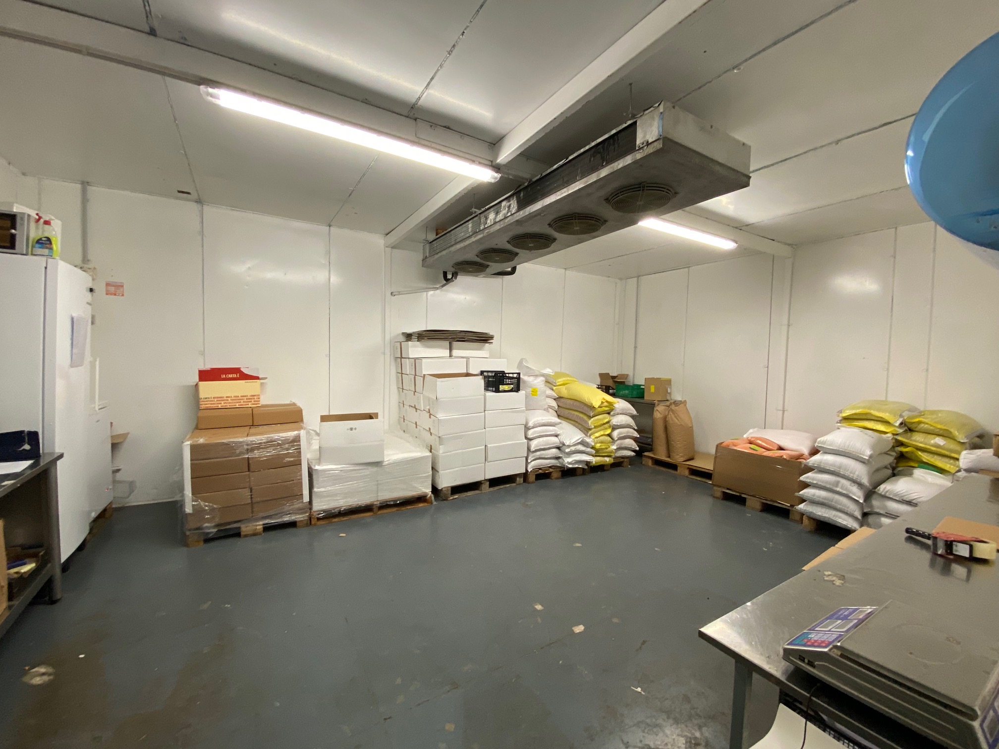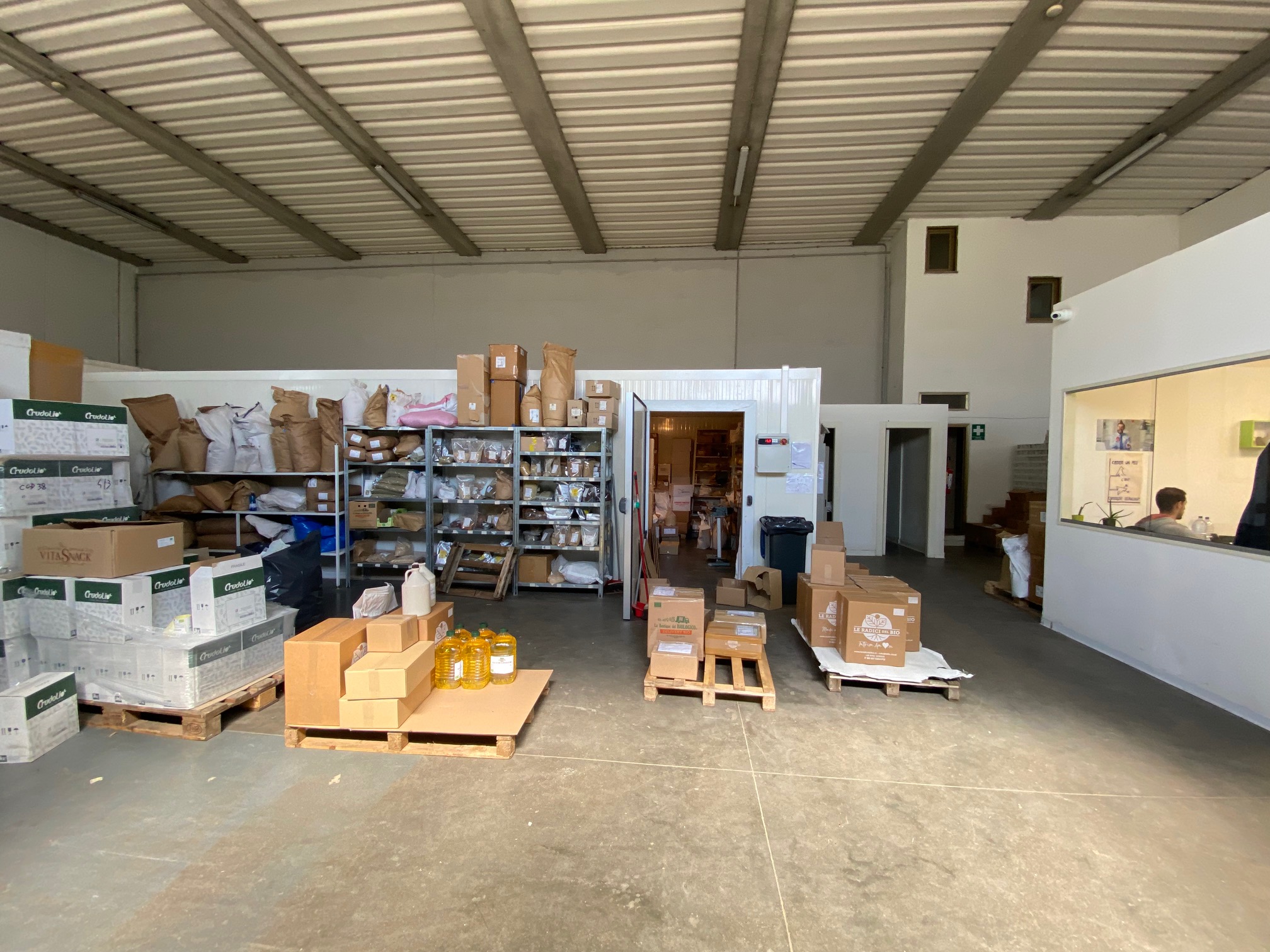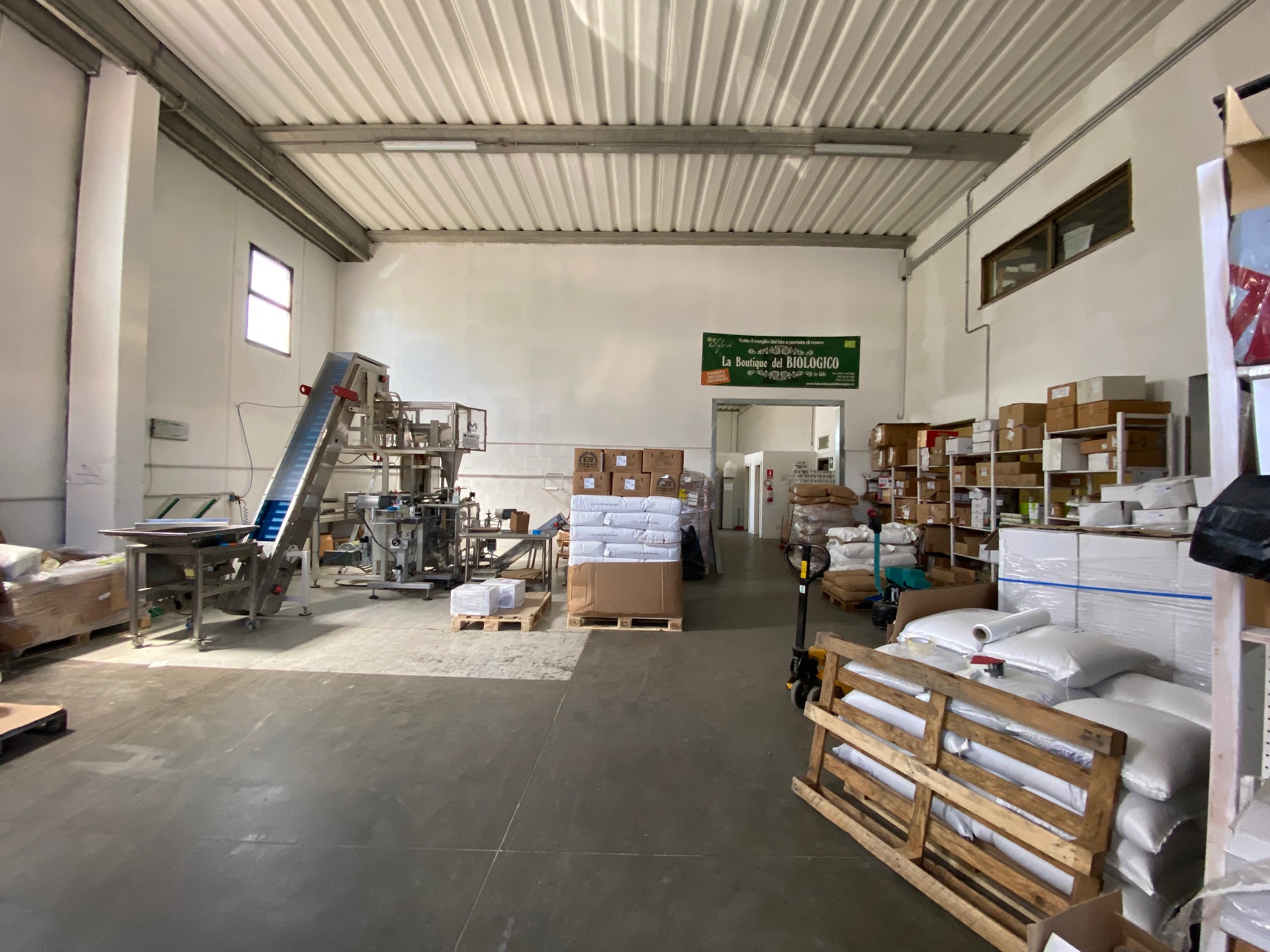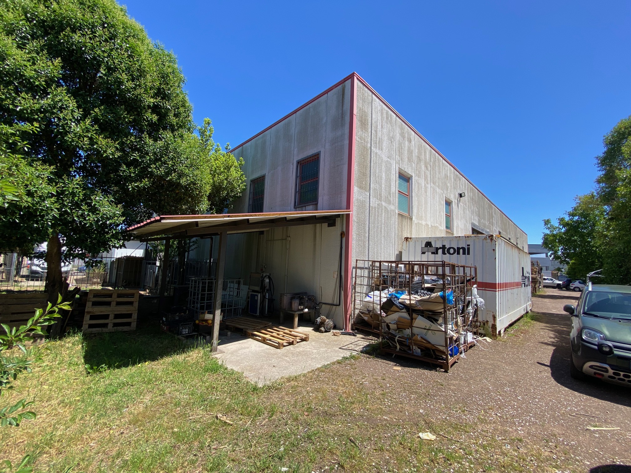 Porzione di capannone di 440 mq con area esterna recintata e con cancello automatico. Ci sono 2 bagni con docce e antibagno, una cucina e zone uso ufficio. Per quanto riguarda il riscaldamento ci sono due ventilconvettori. La porta principale è motorizzata e la proprietà è completata da un pozzo, una tettoia con distributore di gasolio e cisterna sotto terra.